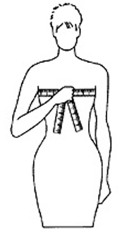 Coloca-se a fita métrica, esticada, logo abaixo das axilas, em volta do busto; soma-se ao número achado 10 cm; divide-se o total da soma por 2; em seguida subtrai-se 8 cm do resultado.